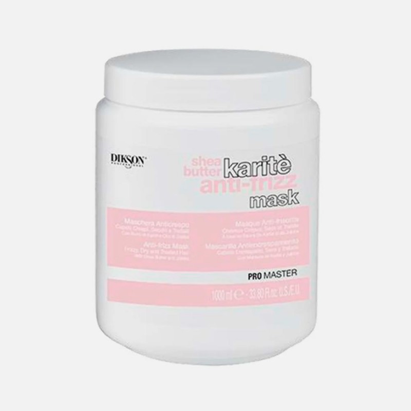 Маска Dikson Promaster Karite Anti-Frizz Mask Shea Butter для кудрявых и вьющихся волос. Маска-шампунь Karité Anti-Frizz Shea Butter от итальянского бренда DIKSON заботливо ухаживает за вашими волосами, укрепляя их от корней до кончиков, увеличивая объём и возвращая природную упругость. Восстанавливает повреждённую структуру прядей, идеально подходит для натуральных кудрей и химической завивки.