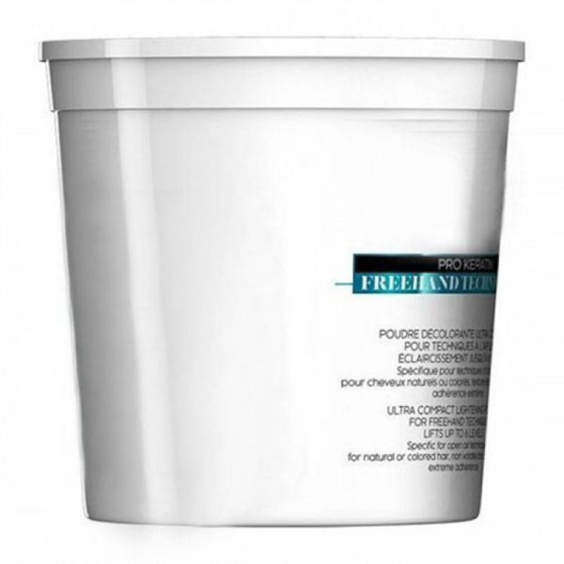 Пудра для открытых техник Лореаль Профессионал Блонд Студио Фрихэнд Техникс Лайтнин Паудер обладает мощностью осветления до 6 тонов, а также кремовая нелетучая текстура повышенной плотности, которая не осыпается и не оставляет следов на соприкасающихся с прядью волосах, позволяет добиваться очень естественных и мягких результатов. В составе содержится комплекс Pro-Keratin. Пудра обладает нелетучей текстурой. Формула специально разработана для использования в техниках на открытом воздухе. Лореаль Профессионал Блонд Студио Фрихэнд Техникс Лайтнин Паудер Обесцвечивающая пудра для открытых техник - сильно обесцвечивающая пудра для балеяжа, мелирования на открытом воздухе, перед оберткой натуральных или окрашенных волос.