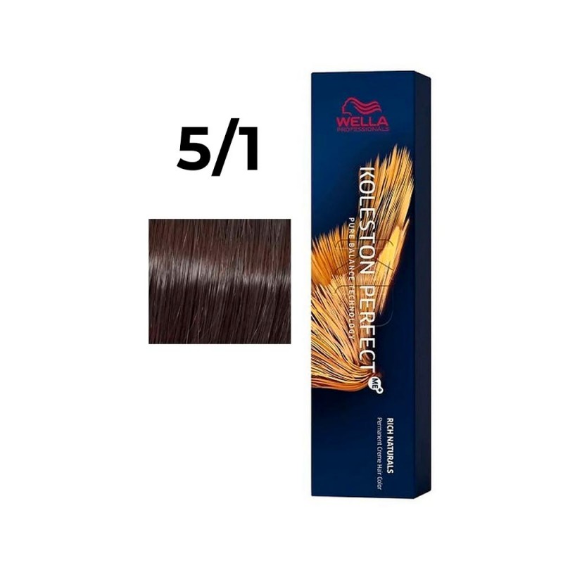 После окрашивания волосы приобретают чистый и сбалансированный цвет с естественной глубиной и блеском. Молекула ME+ Wella Крем-краска Koleston Perfect NEW 5/1 снижает вероятность возникновения аллергии в 60 раз.